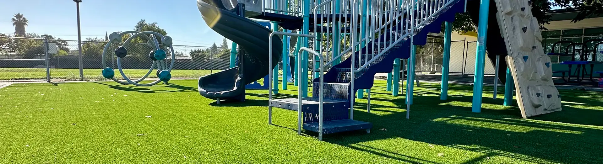 Playgrounds At SYNLawn Central California, we also offer artificial playground turf. Our playground grass is not only inviting and durable, but it is also soft and cushioned. This makes it an optimal surface for play areas and playgrounds at homes, businesses, apartments, and more!
