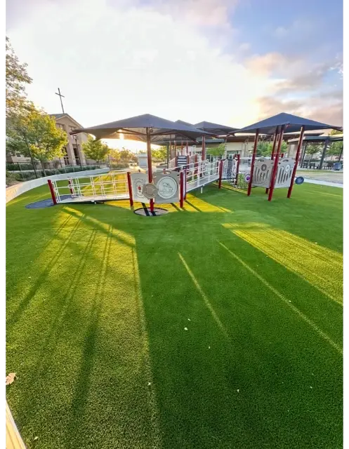 Planning for parks in Central California requires consideration of water usage because of the dry climate and frequent droughts. Thankfully, our artificial turf is a great option for parks because it looks lush and green year-round while requiring significantly less watering than conventional grass. This helps save money and conserve water!