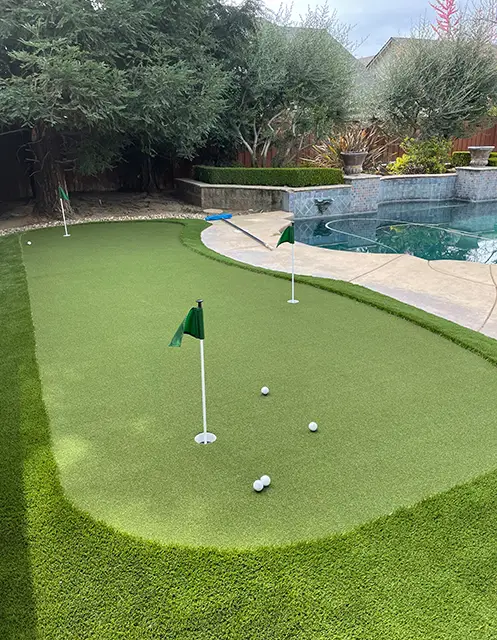 Absolutely. Many Fresno homeowners and business owners build a complete short-game environment by pairing a putting surface with fringe turf, chipping pads, or a small approach area. Fringe adds realism and makes the green feel more like a true golf feature, while chipping zones allow you to practice bump-and-runs, chips, and pitch shots. SYNLawn Central California can also integrate features like multiple pin locations, varied slopes, or transitions that create a more dynamic practice experience.