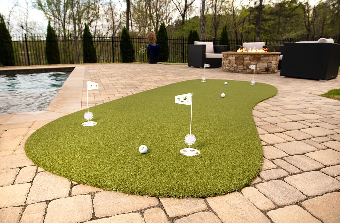 SYNLawn® knows you take your golf game seriously. We’re committed to providing surfaces for our residential and commercial customers that cultivate their enjoyment of the game while making practice more convenient. Give your short game and your leisure time the ultimate gift: a synthetic turf practice green from SYNLawn®.